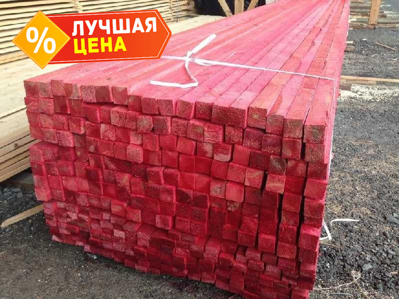 Брусок пропитан специальным материалом. Он обеспечивает ее защиту от плесени и грибка, гниения, повреждения от вредителей. Также дает характерный и яркий красный оттенок.